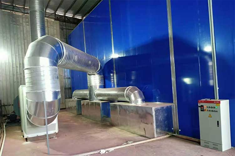 2.2、噴漆室采用上送風側(cè)排風玻纖地棉漆霧處理方式的結(jié)構(gòu)形式。