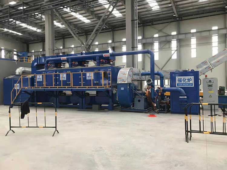 根據現場情況,設計催化燃燒方案如下所示,廢氣處理能力為滿足1套30000風量的噴漆烤漆房的環保處理達標排放方案,并能保障噴漆,烤漆房的通風不受影響;采用吸附濃縮+催化燃燒組合工藝,整個系統工作過程封閉循環,不產生二次污染,設備投資及運行費用低。吸附材料使用蜂窩狀活性炭(不低于1.1m3/箱)。使用優質貴金屬鈀、鉑附著在蜂窩狀陶瓷板上作為燃燒催化劑,貴金屬含量不低于300g,催化燃燒凈化率≥97%。催化燃燒室材質采用>5mm厚碳鋼。控制系統采用微機集中控制系統,催化燃燒系統具有自診斷功能,異常報警及自動停機功能,系統必須具備主動安全保護措施,符合消防安全要求。催化燃燒系統的整體設置能夠滿足節能降耗的要求。本凈化設備尾氣的大氣染污源***高允許排放標準參照四川省固定污染源大氣揮發性有機物排放標準DB51-2377-2017