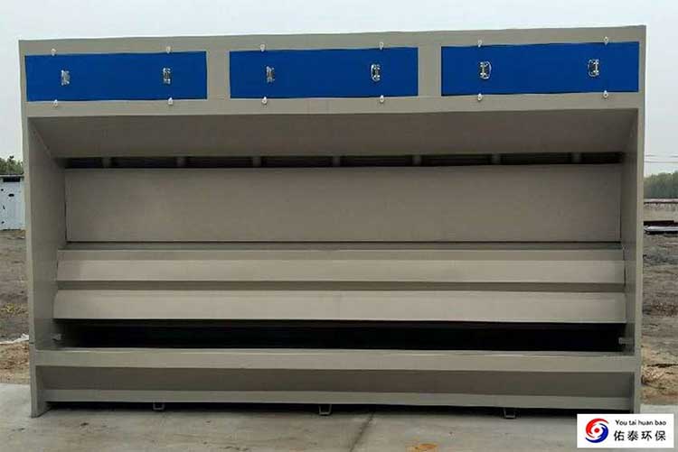 2、無泵水簾柜箱體寬度一般在0.9-1.3米左右,水旋柜因為從后面撈漆渣,寬度一般1.6米。