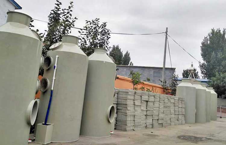 噴淋塔廢氣處理塔處理廢氣的方式如下,廢氣塔在運行中,不斷有機氣體由風管引入噴淋塔,經過填料層,廢氣與漆霧凝聚劑的稀釋劑進行氣液兩相充分接觸吸收中和反應,有機氣體經過凈化后,再經除霧板脫水除霧后由風機排入大氣。吸收液在塔底經水泵增壓后在塔頂噴淋而下,較后回流至塔底循環使用。凈化后的有機氣體中,漆霧去除率達到95%以上,為后續處理噴漆廢氣中的甲苯,二甲苯等有機氣體提供良好工作條件。