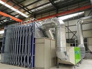 前言:水旋噴漆柜與移動伸縮噴漆房聯合使用,可以有效的收集噴漆作業中所產生的漆霧顆粒,為大工件、不方便運轉的噴漆工件提供良好的操作空間。整套設備由以下幾個方面構成,一個是移動伸縮噴漆房,它的作用是將漆霧限定在一定的范圍內。二是水旋噴漆柜,它的作用是將含有漆霧的廢氣分離出來。三是噴漆廢氣處理設備。下面分別介紹這幾種廢氣處理裝置。